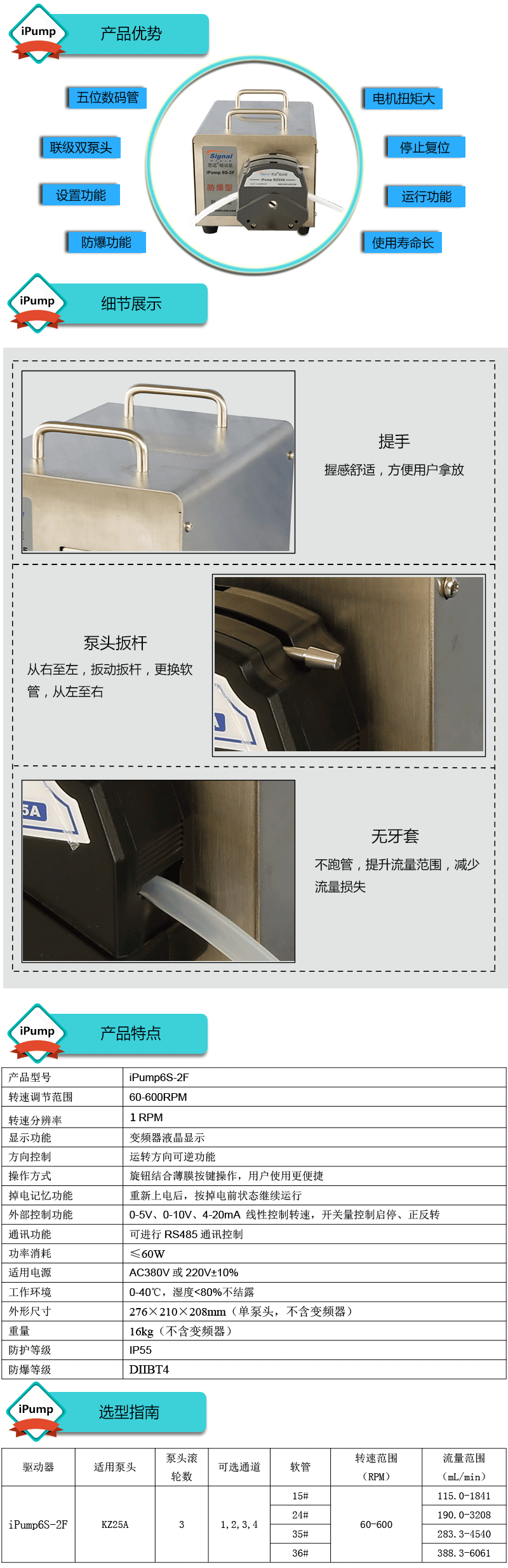 3.電機(jī)扭矩大,可級(jí)聯(lián)雙泵頭