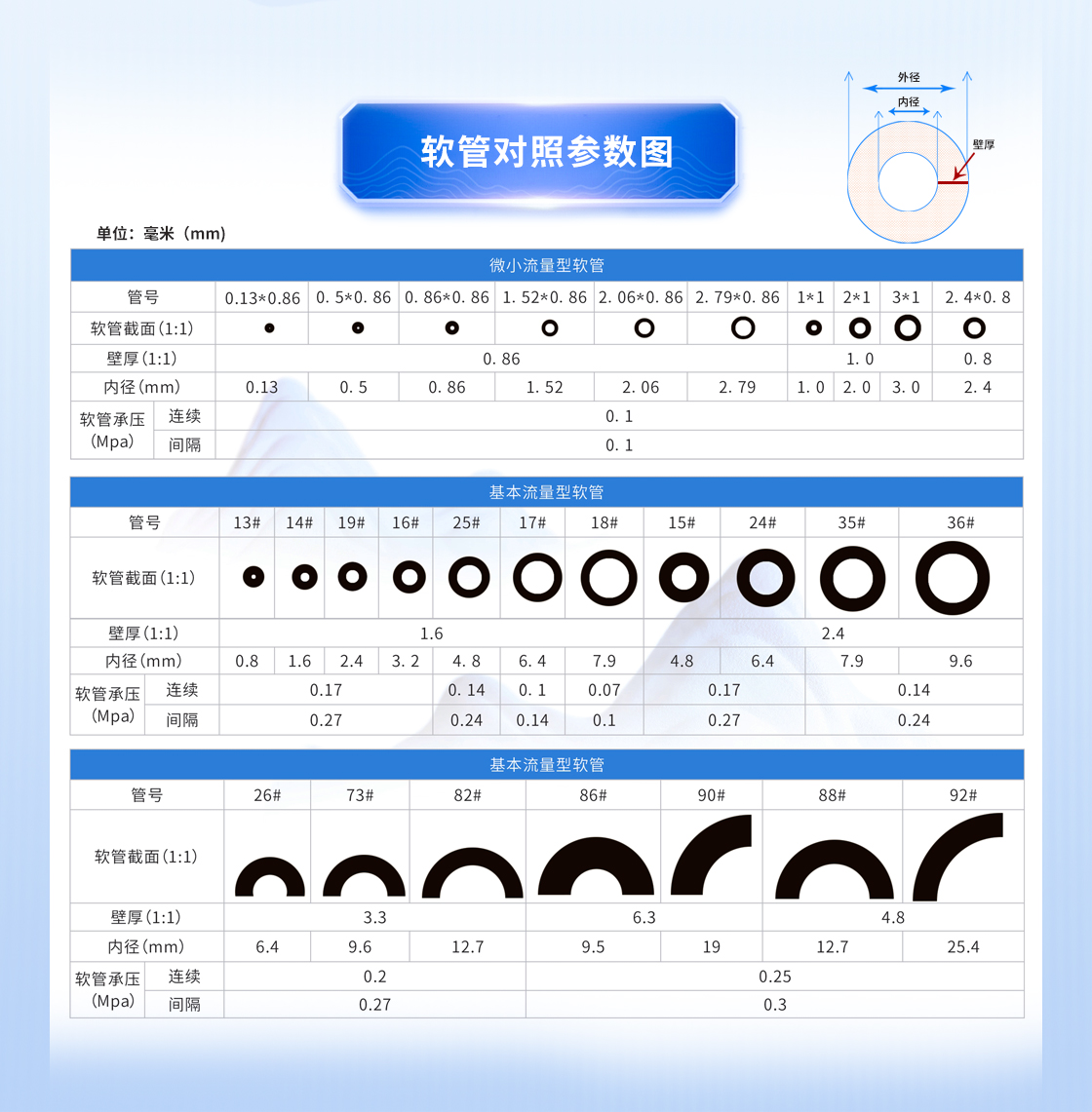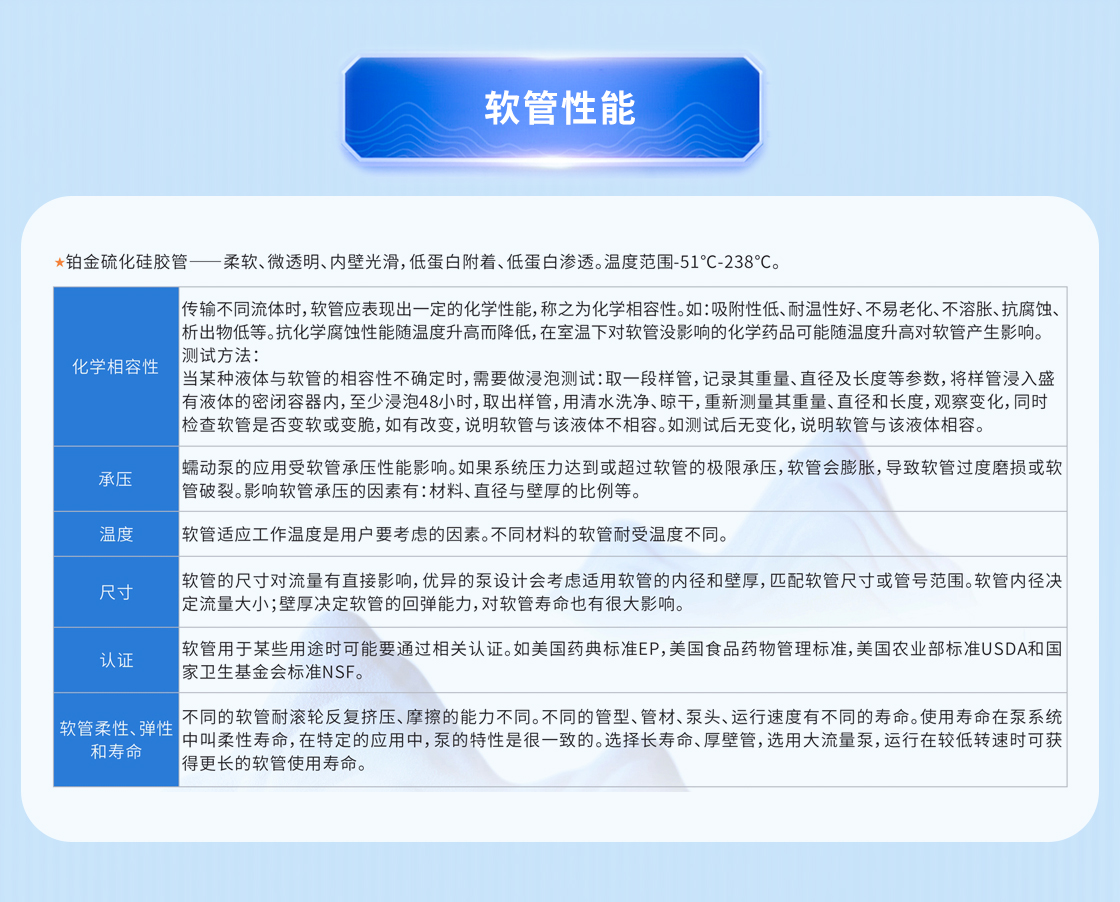 高耐磨性,良好的回彈性,軟管壽命長