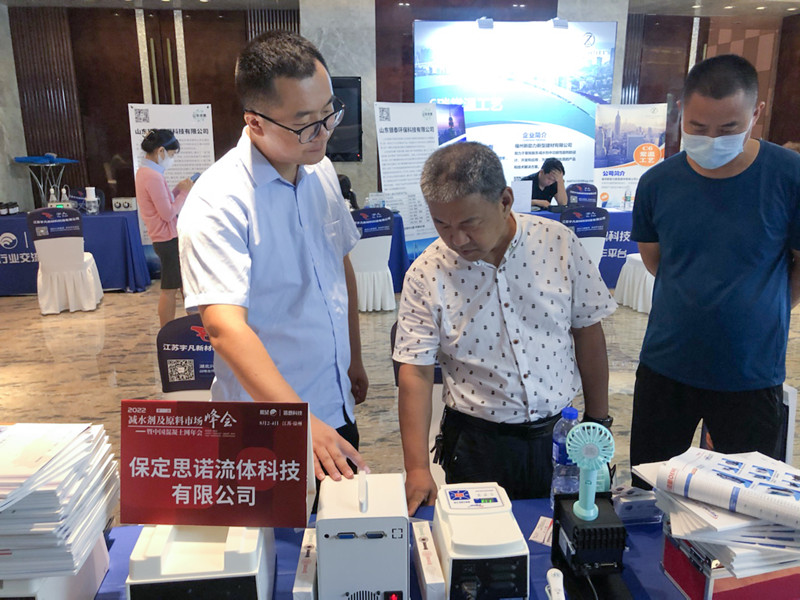 2022年,原油一路猛漲,導致EO、聚醚、丙烯酸等減水劑關(guān)聯(lián)原料價格漲幅明顯,減水劑企業(yè)高成本承壓運行;此次展會為各大減水劑企業(yè)帶來希望和新生,也為蠕動泵行業(yè)市場打開了一片光明。眾多參會人員來到20號展位了解思諾蠕動泵相關(guān)信息,由表及里,如何應(yīng)用,如何維護,我們的銷售經(jīng)理都一一作答,思諾團隊受到所有前來駐足的客商的一致好評,也知道了思諾蠕動泵產(chǎn)品擁有高性能、高質(zhì)量、標準和易清潔易維護等特點,思諾還為減水劑行業(yè)各類應(yīng)用需求提供優(yōu)解決方案?,F(xiàn)場眾多意向客戶添加微信,互換名信片;帶著期望而來,攜載滿意而歸。